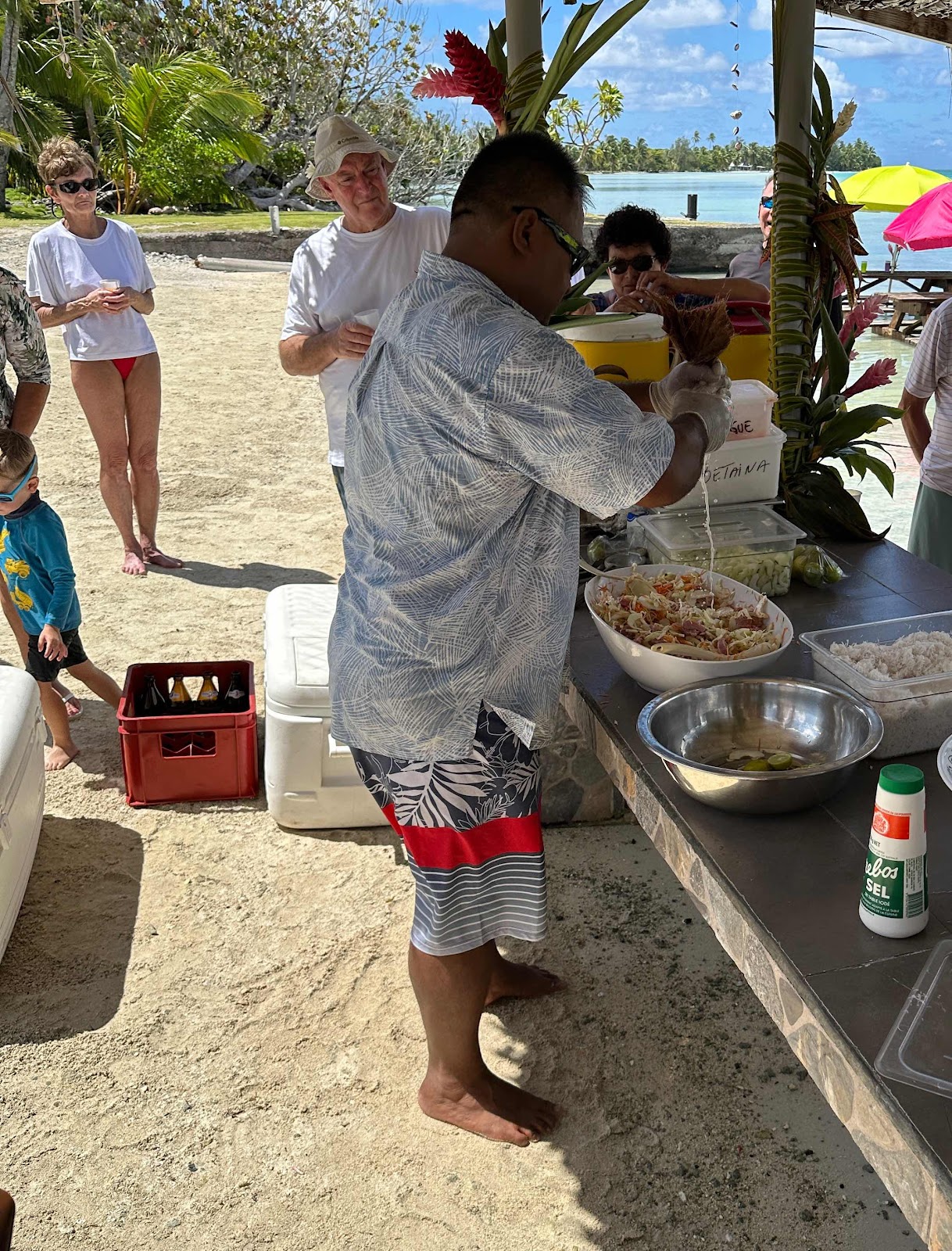Our Captain was also the lunch chef - he prepared ceviche with fresh tuna & veggies, with coconut milk squeezed from the pulp inside a bit of thin tree bark. They were also the entertainment onboard the catamaran, with musical choices ranging from old traditional Polynesian melodies, to “You Are My Sunshine” and “When the Saints Go Marching In”.