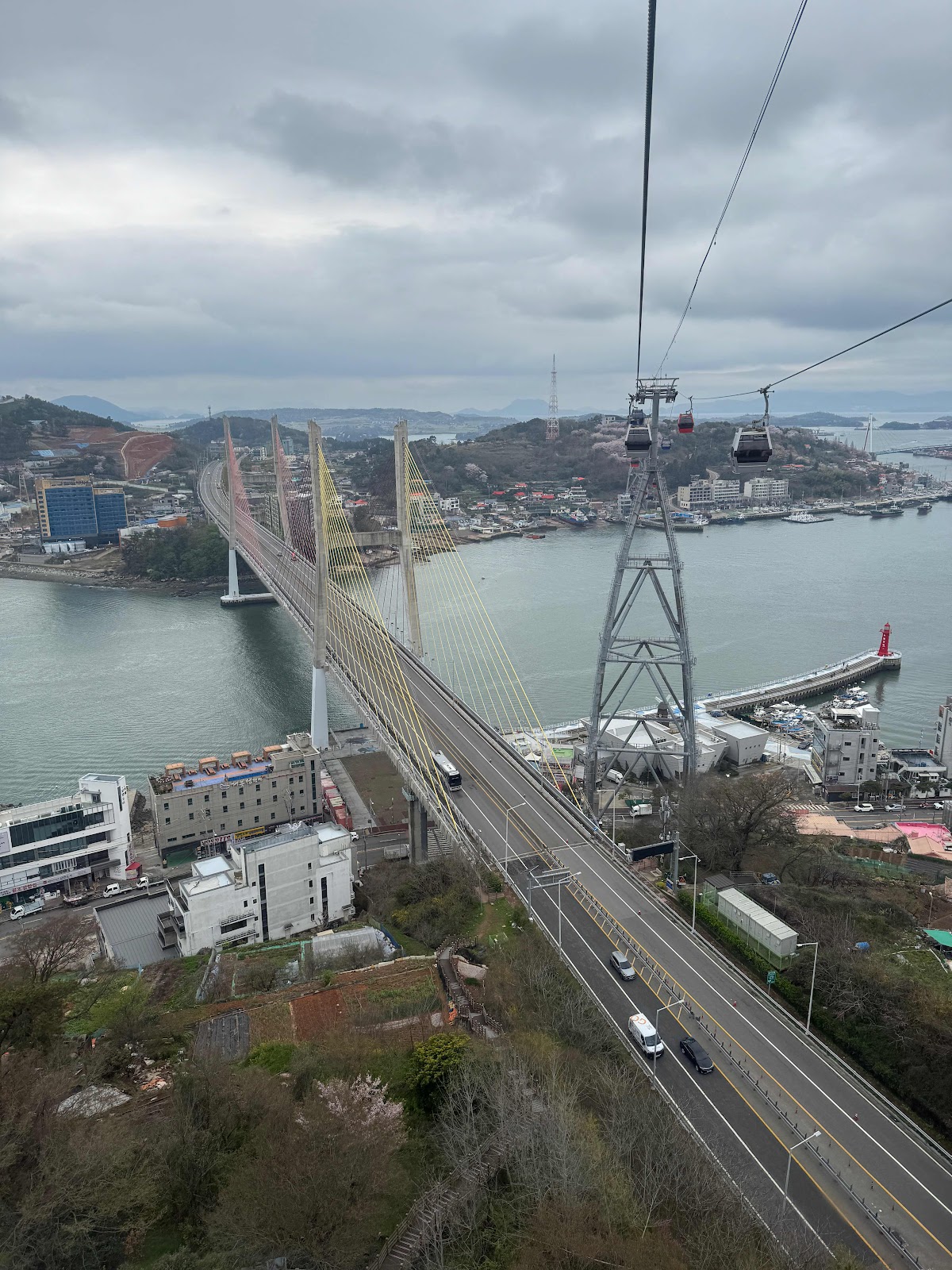 A skyway transported us over the harbor/city area. Good timing, as lots of cherry trees are in full bloom. (Yes, that last one is our ship)